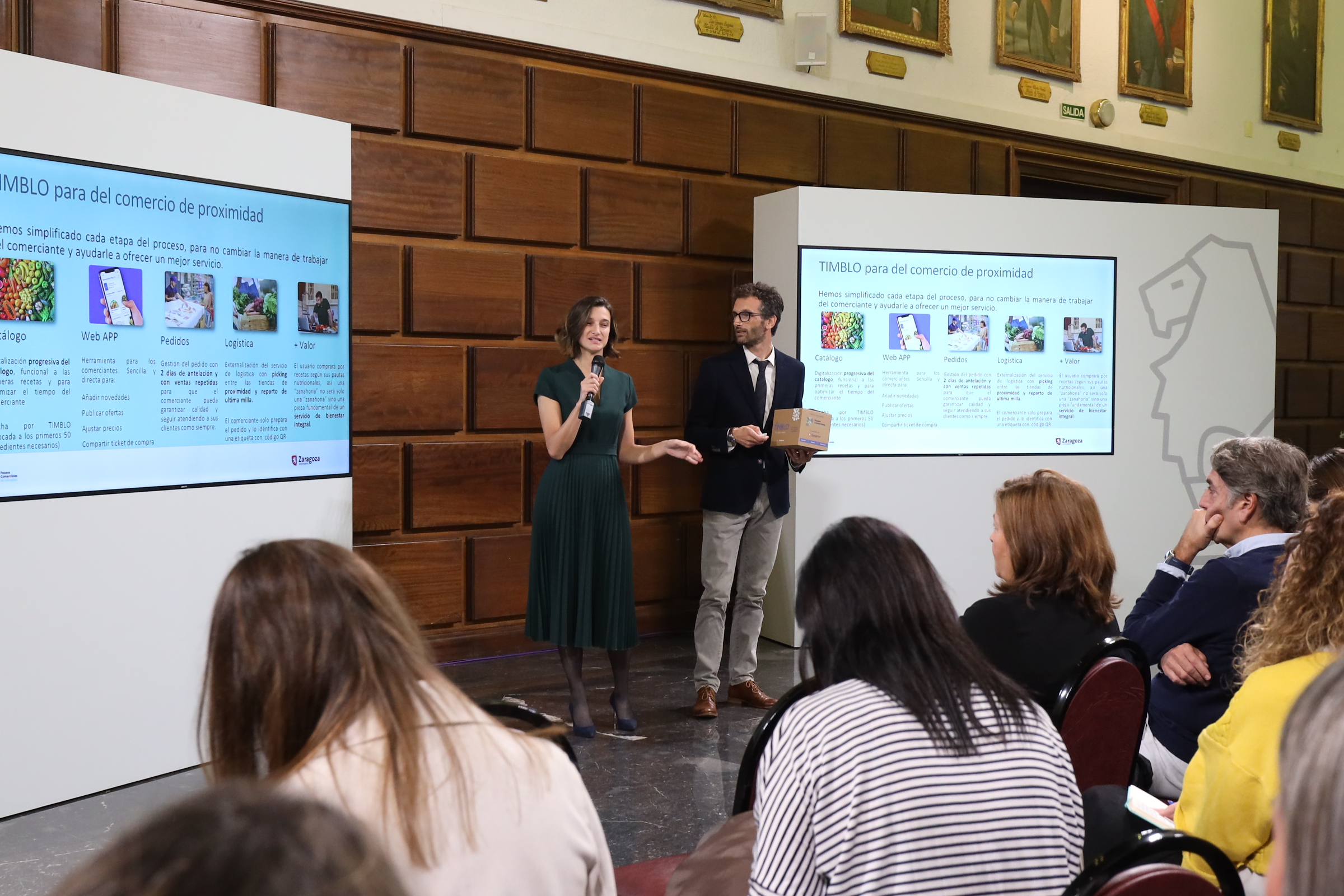 El salón de recepciones del Ayuntamiento de Zaragoza se ha convertido en un foro de innovación digital de la mano de las siete empresas que se van a encargar de modernizar los paseos comerciales de la ciudad encuadrados dentro del Plan Local de Comercio y Hostelería de Zaragoza, concretamente los de Delicias y Zaragoza Esencial. El Área de Economía, Innovación y Empleo del Ayuntamiento de Zaragoza, encargado de impulsar el Plan, ha organizado de la mano de Cámara de Comercio y la Oficina Técnica del proyecto un encuentro para que las empresas ganadoras del concurso de retos lanzados en julio con un presupuesto de 1,6 millones de euros, para dar a conocer cómo van a transformar a través de la digitalización las galerías piloto. Las propuestas dadas a conocer serán realidad en las próximas semanas.